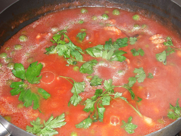 Aggiungiamo il prezzemolo, un po’ d’acqua calda per non far asciugare troppo il tutto e saliamo a piacere.